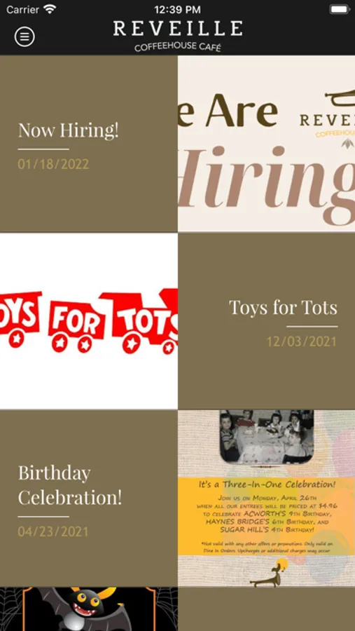 Welcome to the Reveille Cafe mobile app! The app conveniently brings all your favorites to your fingertips.