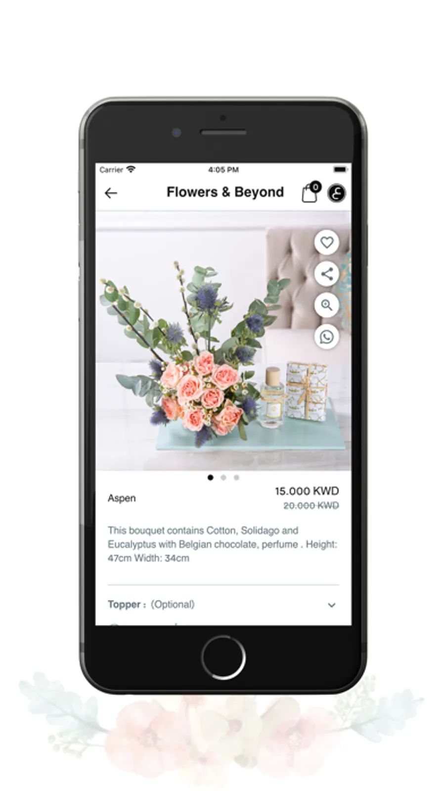 تطبيق فلاورز اند بيوند هو طريقك للحصول على أفضل أنواع الزهور وأكثر. ما عليك إلا: فتح التطبيق ثم النقر على التصنيف المناسب، وبعدها ببساطة إضافة ما تفضله إلى عربة تسوقك. أكمل عملية الطلب بإضافة المعلومات المطلوبة لتحصل على طلبك في الوقت الذي تريده.