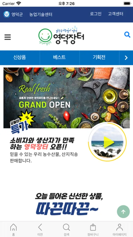 영덕군 온라인 공식쇼핑몰. 농수산품, 가공식품, 영덕군 지역농수특산물, 계절별 특산물 판매.