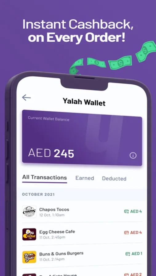 You earn cashbacks on every order instantly, its raining rewards all year round at Yalah.