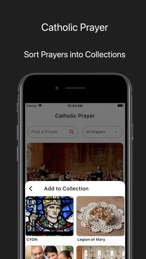 It allows you create Prayer Collections for group of prayer you frequently say such as Daily Prayers, Novenas Prayer group Prayers etc. Then you can easily add any prayer to collections for easy access.