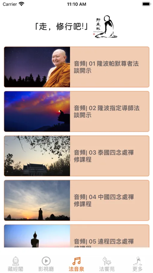 「走,修行吧!」是一款多功能的經典及佛法學習公益應用程式, 致力於讓更多人深入了解佛陀及高僧大德們的教導,進而依循修行 的地圖,而邁向離苦之路。