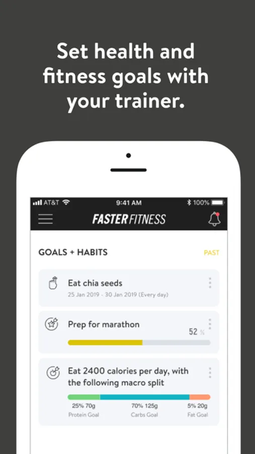 With the Faster Fitness Training App, you can start tracking your workouts and meals, measuring results, and achieving your fitness goals, all with the help of your coach.