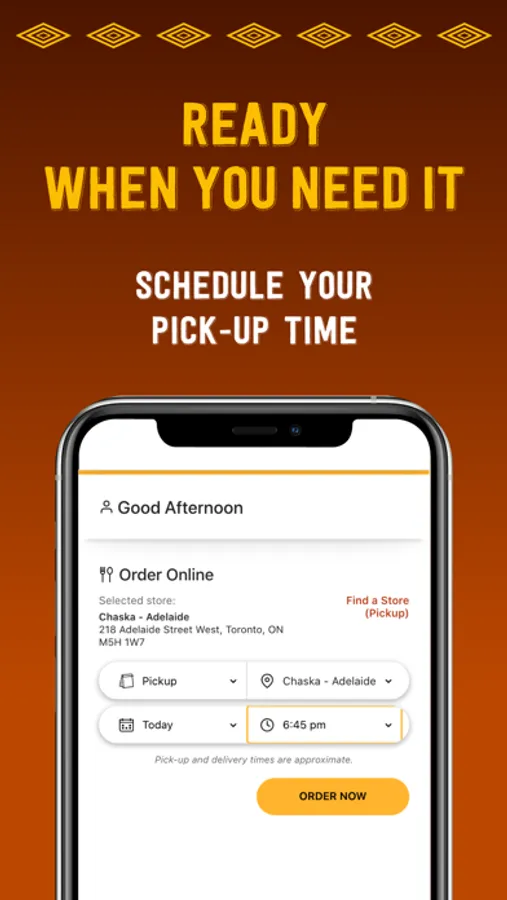View menu and order your favourites right through the app. Order now for friends and coworkers. Schedule your order for exactly when you want it.