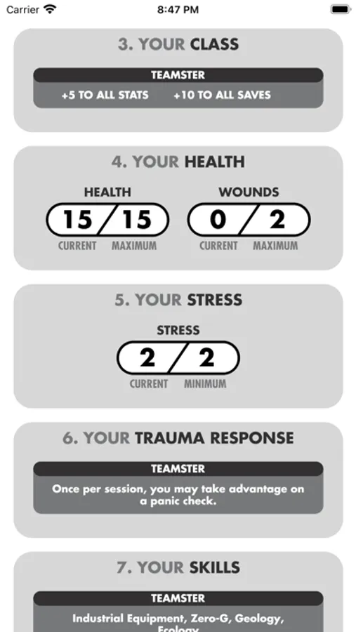 - Detailed status tracking: Keep track of your health, wounds, Stress, ammo, and other conditions with just a few taps. No more erasing and re-writing over and over.