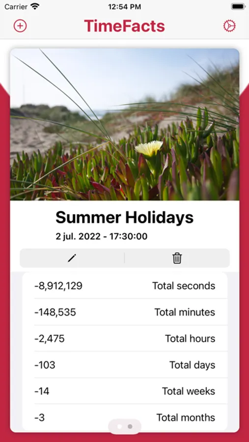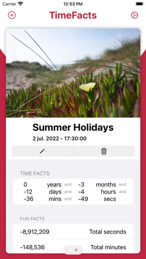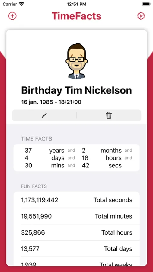 On top of the straight-forward time facts, it calculates the age or total remaining time in seconds, e.g 1.567.456.345 seconds. The same is available for minutes, hours, days, weeks and months.
