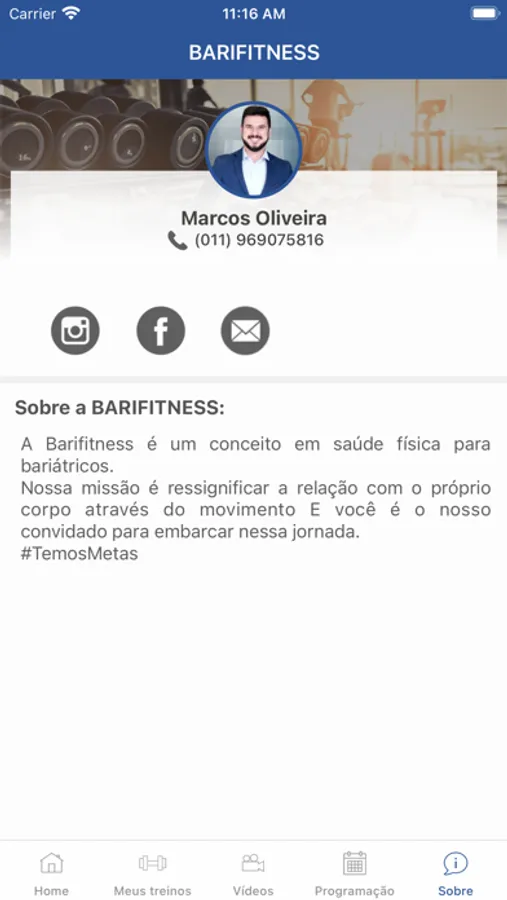 Através do aplicativo Barifitness é possível receber todas as instruções para realização do seu treino, de forma intuitiva e ilustrada através de textos, imagens e vídeos.