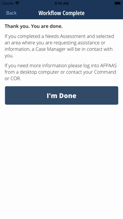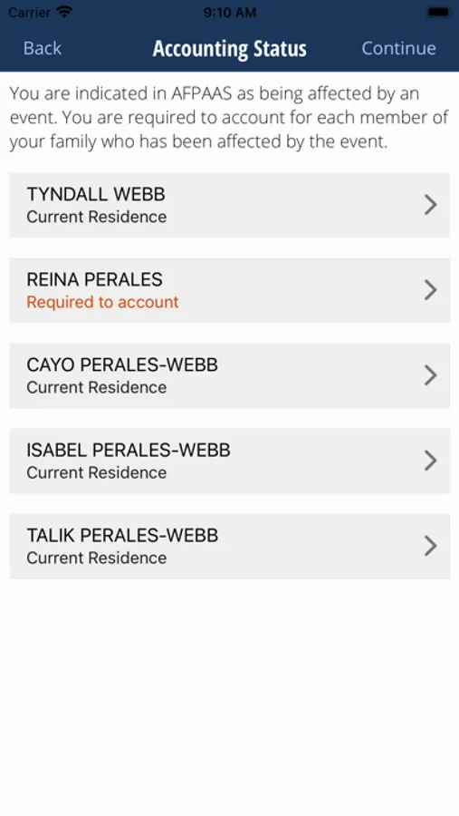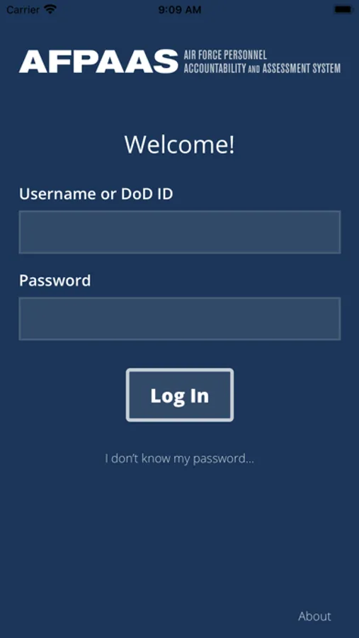 The AFPAAS mobile app allows account holders access to verify and/or update information as stored on the Enterprise DoD web application, referenced here as AFPAAS - Air Force Disaster Personnel Accountability and Assessment System. AFPAAS provides users the opportunity to Report Accounting Status, Update and Verify Contact Information, Update and Verify Location Information, Complete Needs Assessments, and View Reference Information.