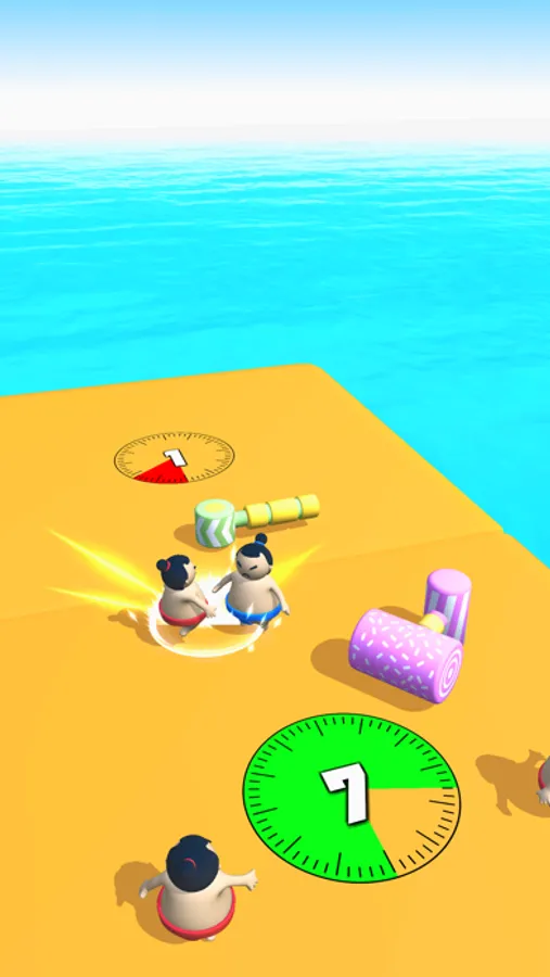 Push everyone off your platform and get to the next one! Be careful with timing, if you don't clear platform before time runs out you lose!