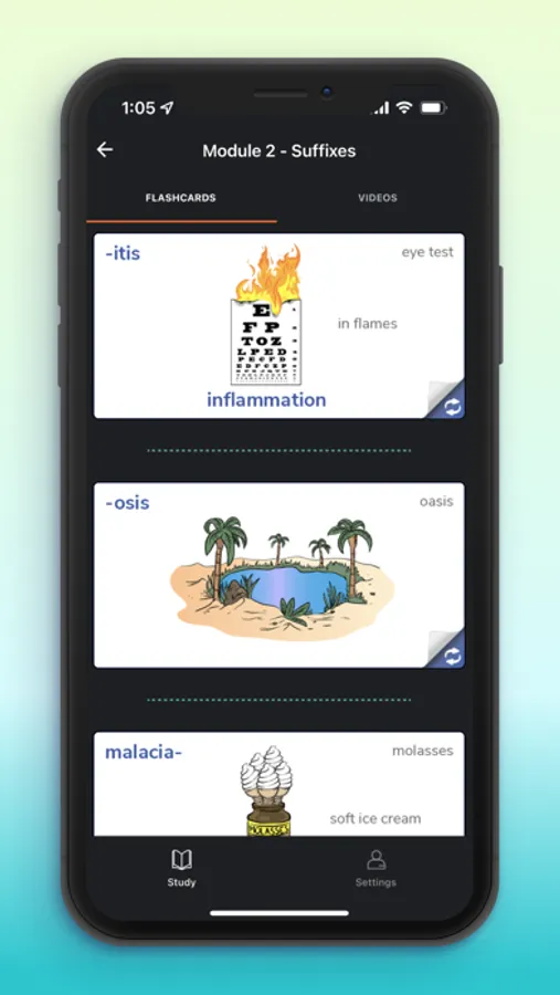 Medical terminology flashcard sets and short video courses quickly teach you 275 medical suffixes, prefixes, and roots that combine to form 11,000+ complex medical terms.