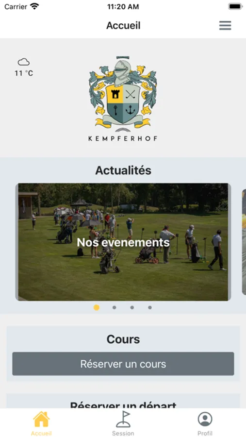 Réservez un parcours ou un cours de golf via votre téléphone sans même appeler le Kempferhof est maintenant possible grave à l’application du Kempferhof.