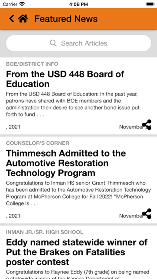 The USD 448 Inman Schools app is a great way to conveniently access the most recent news, announcements, and events.