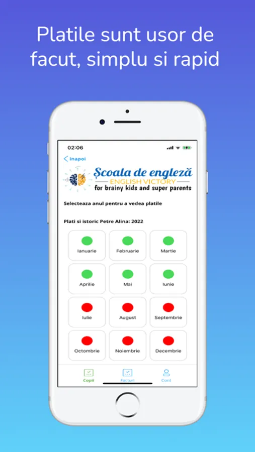 Prin intermediul aplicatiei, parintii pot vedea si inregistra plati pentru copiii lor.
