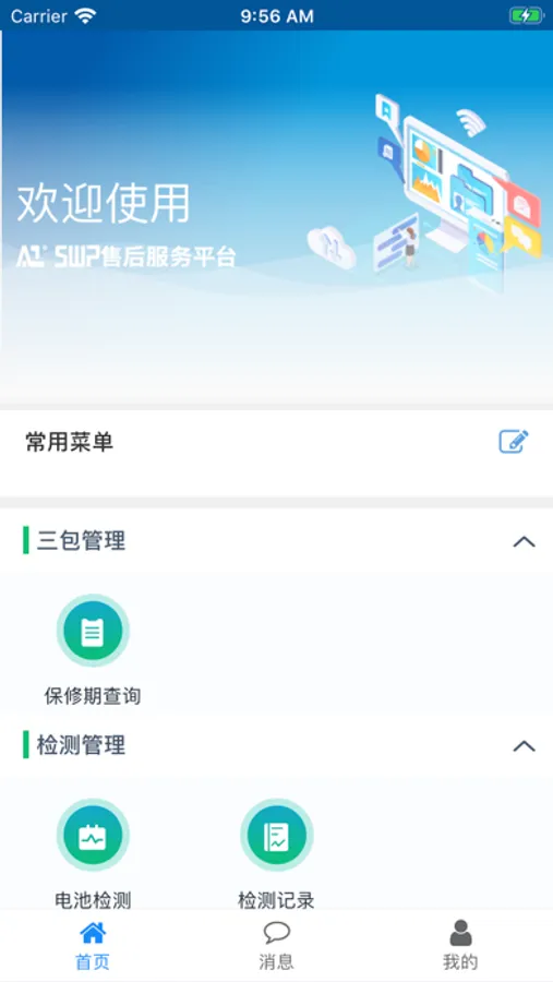 星恒售后服务App,提供电池检测、售后工单、故障件返厂、理赔件签收、物流查询等功能