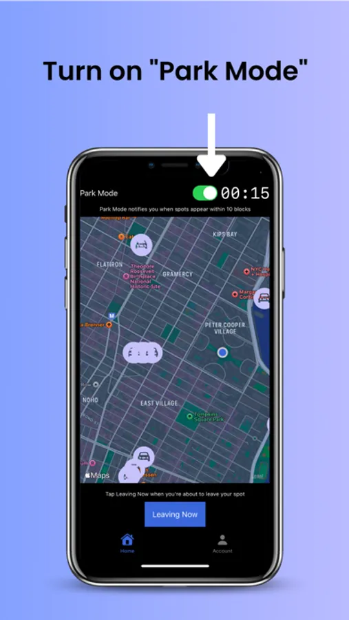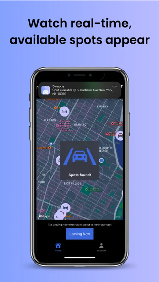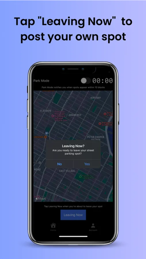Pay it forward by tapping the "Leaving Now" to post your own spot.