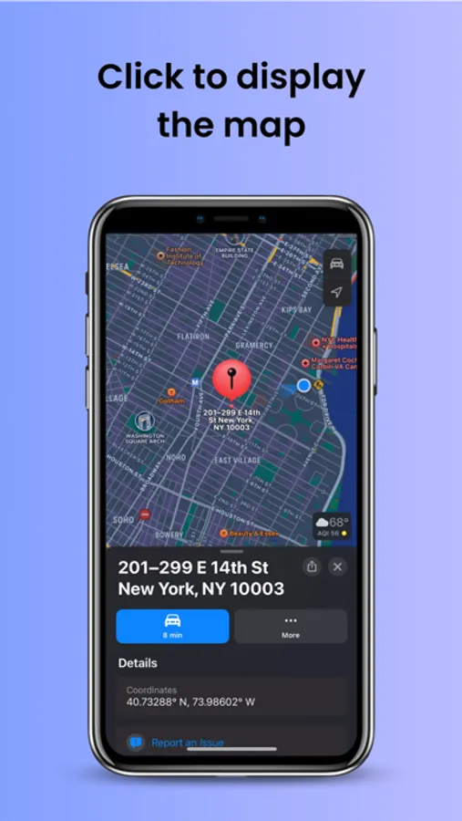 3. Click to display the map and navigate to your spot
