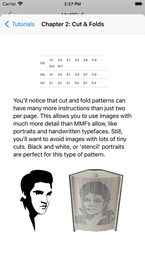 Book art turns hardcover books into bold and sophisticated art pieces. Sometimes called 'Book Origami', book folding can be a surprisingly easy and peaceful form of meditation. Following simple patterns, anyone can create beautiful and unique gifts for loved ones that work fabulously as home decor. The actual book folding patterns were once difficult to find - until now! Simply add your images, shapes, and loved ones' names into the Book Art Pattern Maker, and generate a pattern in seconds. All of your patterns are stored conveniently in your iPhone's Documents folder for easy access. With the iOS Book Art app, it's easier than ever to create Measure, Mark, Fold patterns, Cut & Fold patterns, and Shadow Fold patterns.
