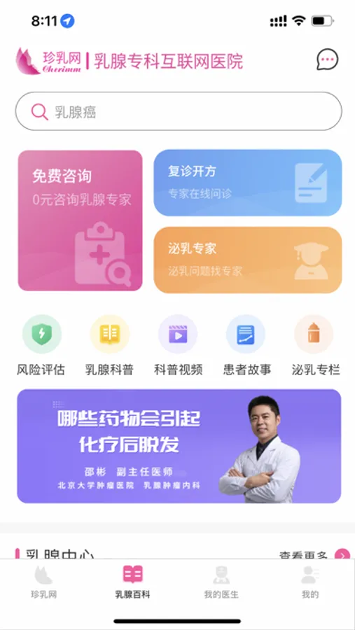 珍乳网从乳腺健康切入,整合了乳腺专家医疗资源,预防保健、远程问诊、健康管理、专科互联网医院等服务。
