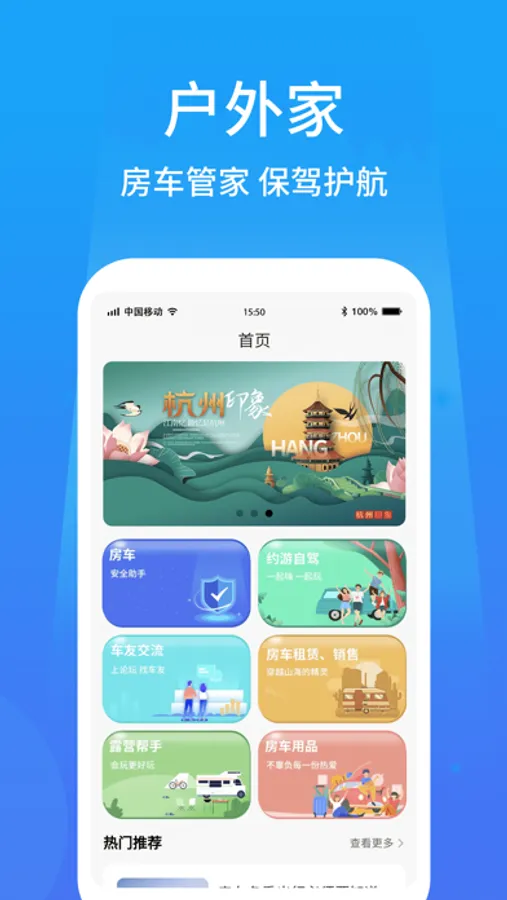 户外家是一款集房车、旅游、户外露营于一体的新场景APP应用平台。打造年轻人喜爱的户外社交平台,有关户外、露营、房车生活的一切,都可以在户外家中找到。