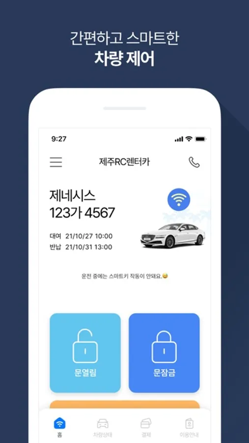 렌터카 커넥티드 서비스는 커넥티드카 차량을 예약한 고객을 위한 애플리케이션입니다.