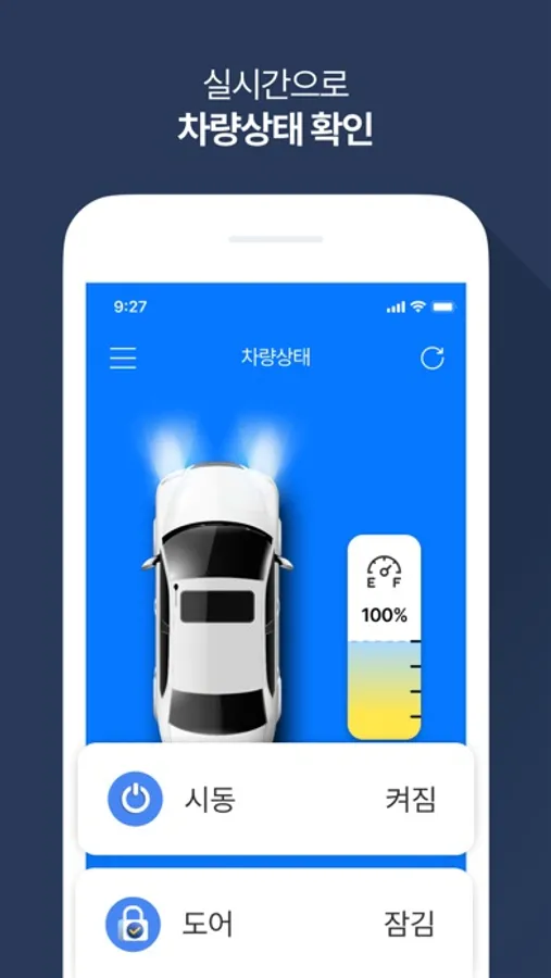 - 시동 상태, 도어 상태, 배터리 상태 등 전반적인 차량 정보를 한눈에 볼 수 있습니다.