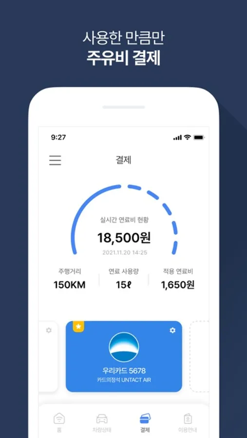 - 차량 이용 기간동안 비치 된 주유카드로 주유비를 결제 하고 차량 반납 시 사용한 만큼만 결제 됩니다.