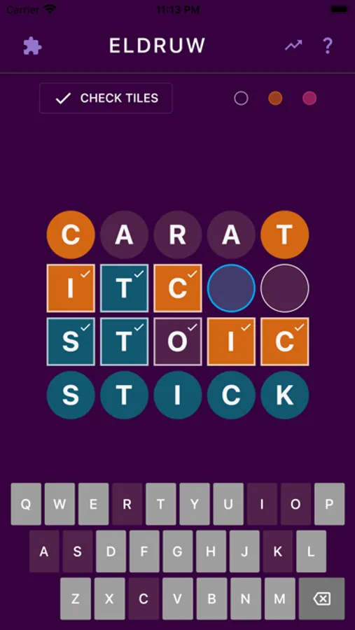 Start with the first word and the last word, and based on the colored tiles, fill in the middle words. Puzzles range from 4-6 words long.