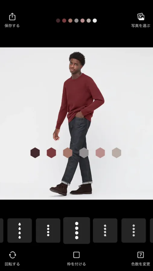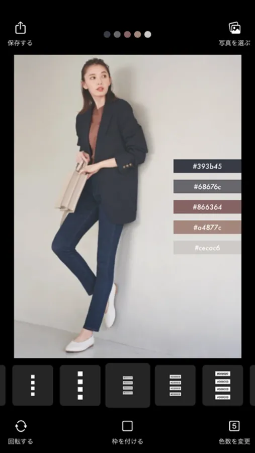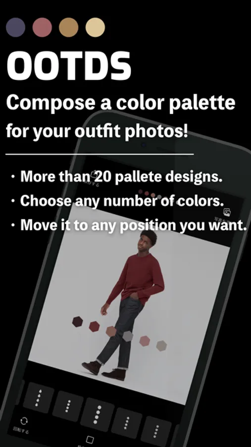 Add a color palette to outfit photos,OOTD,landscape photos, and illustrations for a fashionable look! OOTDS is an easy-to-use application that automatically extracts color information from photos, images, and illustrations, and adds a color palette.
