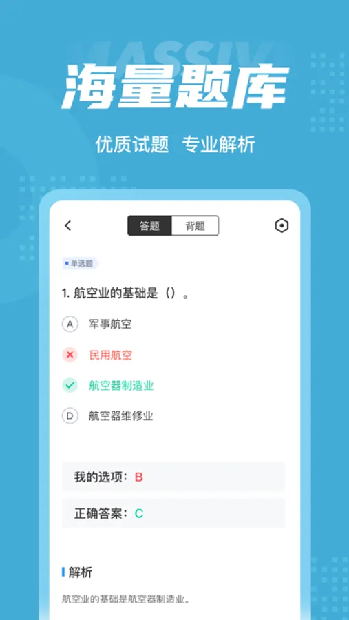按照民航安全检查员考试大纲建设,集做题、考试一体,包含历年真题集和模拟试题题型,试题附解析,一站式备考,大幅度提高民航安全检查员考试通过率。