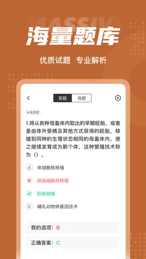 家畜繁殖员考试聚题库新增搜题功能,家畜繁殖员考试中的疑问一搜便知,更支持语音和拍照搜题。