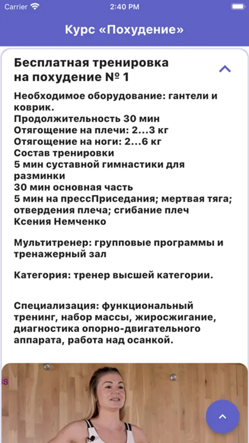 С приложением AppFitness Вы сможете поддерживать себя в хорошей форме не выходя из дома или в любом удобном месте и в подходящее время. Специально для Вас команда тренеров разработала множество программ тренировок, а также курсы на различные темы. Программы включают как текст так и видео, которые позволят вам заниматься спортом вместе с тренером, повторяя все движения, сопровождающиеся комментариями и советами.