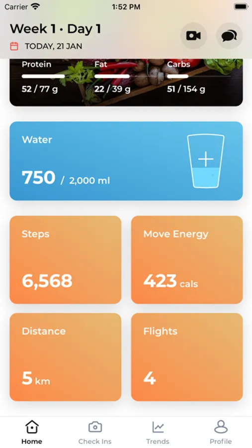 The app integrates with Apple Health to show your daily activity - distance, steps, active energy, and flights to help you better achieve your goals.