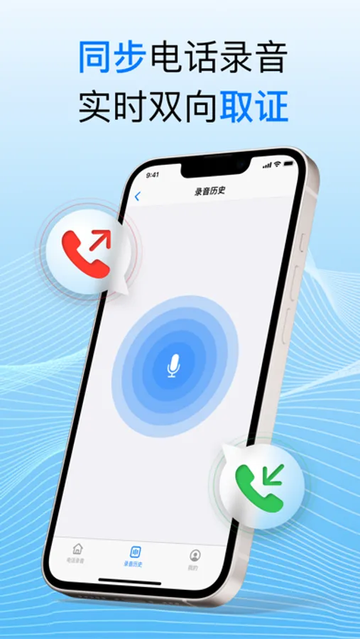 我的电话录音机是专门针对苹果用户没有通话录音功能而开发的苹果手机通话录音软件,记录您任何想记录的苹果手机通话录音。我的电话录音机是公证处合作APP取证维权必备软件,具有在线通话录音、一键录制、不限录音时长、不限录音数量,简单、方便、安全、音质清晰、云端存储,可以随时听自己的录音的电话录音软件APP。