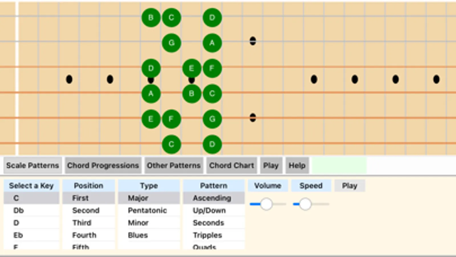 in a deeper way. For instance each major / minor key for the guitar has exactly five positions. The fingerings for each position are identical and with this training software you are able to see the five patterns displayed in any key. Learning those patterns and seeing the