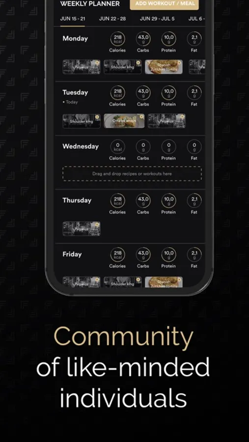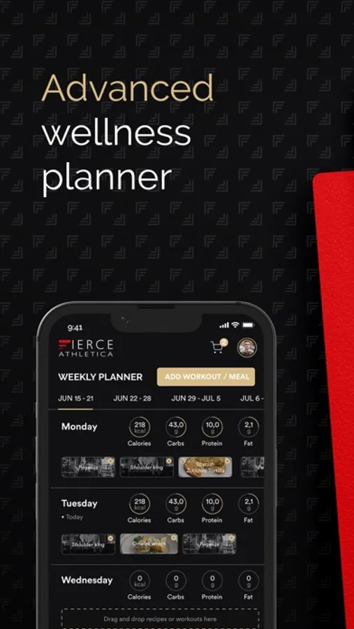 My Fierce App comes with a total-life wellness planner that will help you stay organized and motivated through achieving your goals. The most advanced fitness planner on the market lets you plan your workouts, diet, calories and macronutrients ahead of time. Every time you add a recipe, our advanced AI will automatically adjust your calories and macronutrient needs to reflect your meal’s nutritional value throughout the day.