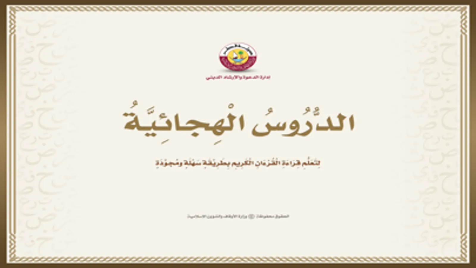 في إطار حرص وزارة الأوقاف والشؤون الإسلامية بدولة قطر على كل ما يخدم كتاب الله تعالى من علوم ووسائل تعليمية متميزة قامت بإصدار هذا التطبيق التعليمي لكتاب الدروس الهجائية إصدار قسم القرآن الكريم وعلومه بإدارة الدعوة والإرشاد الديني مستفيدة من أحدث التقنيات في تعليم القرآن الكريم، حيث عكف فريق من الوزارة على إنتاج هذا التطبيق بما يتناسب مع التطور التكنولوجي ويخدم الهدف الأساسي للكتاب.