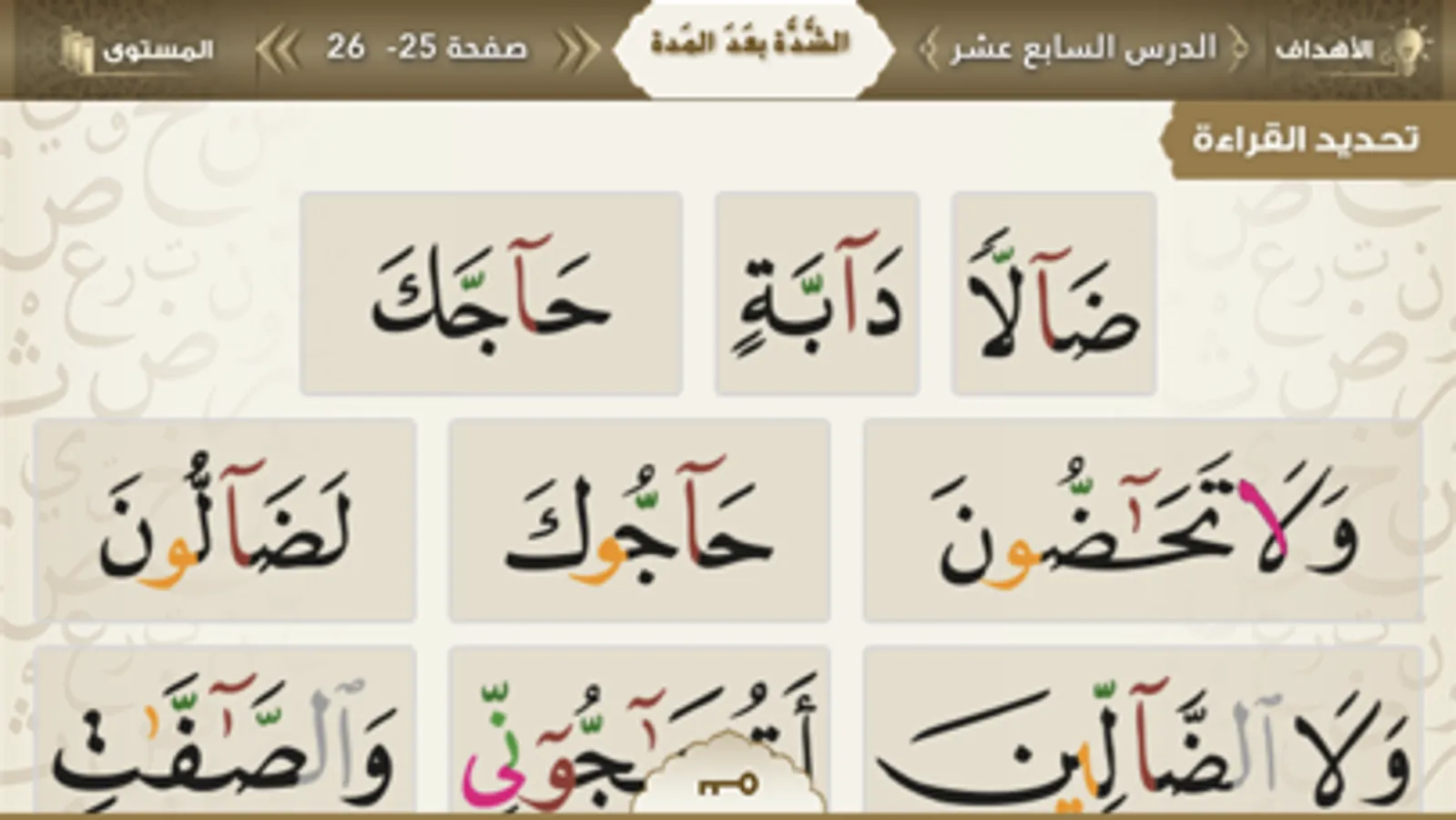 المستوى الثالث: اشتمل على الحروف المشددة.