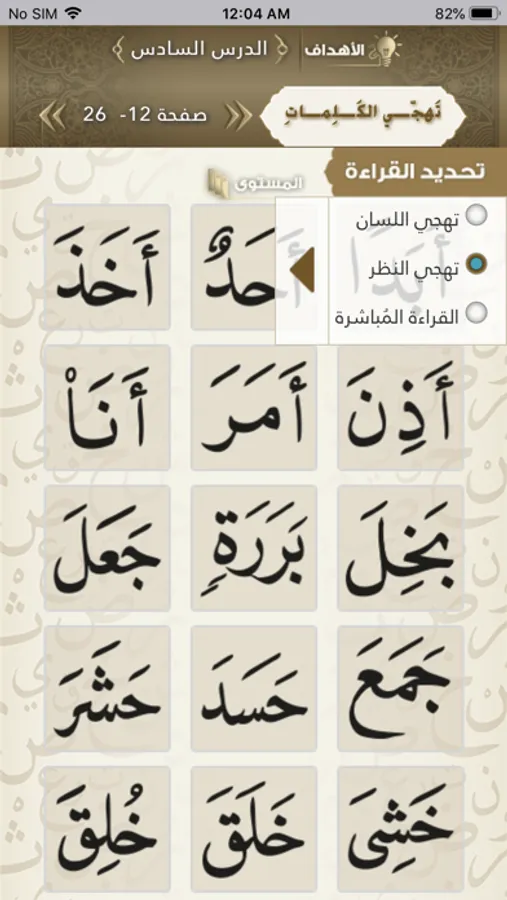 احتوى التطبيق على ثمانية عشر درسا وزعت على ثلاث مستويات: