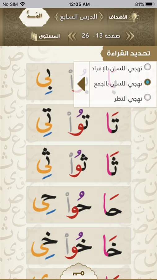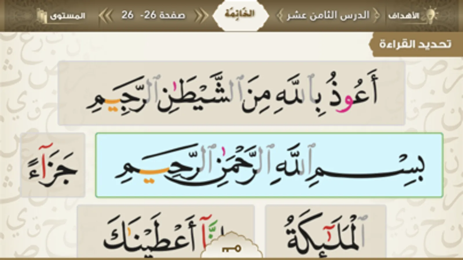 يهدف هذا التطبيق إلى تعليم قواعد القراءة والتي تتمثل في ثلاث قواعد: