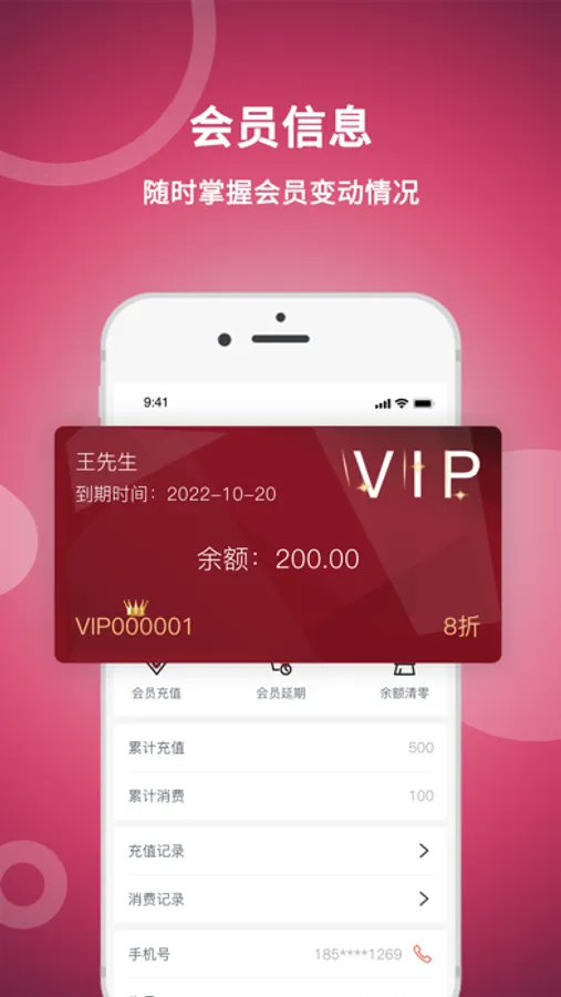 【在线记账】:支持会员充值、会员消费以及散客收银在线记录。