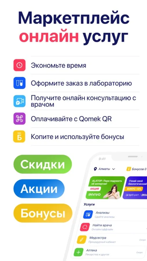 Qomek является первым приложением предоставляющий услуги лабораторий-партнеров по всей территории Казахстана. Это сервис для интерактивного общения лабораторий и пациентов, получения высококвалифицированной услуги в виде записи на проведение исследований для себя или близкого человека, с возможностью вызвать специалистов лабораторий домой, а также получение и хранение результатов в одном месте