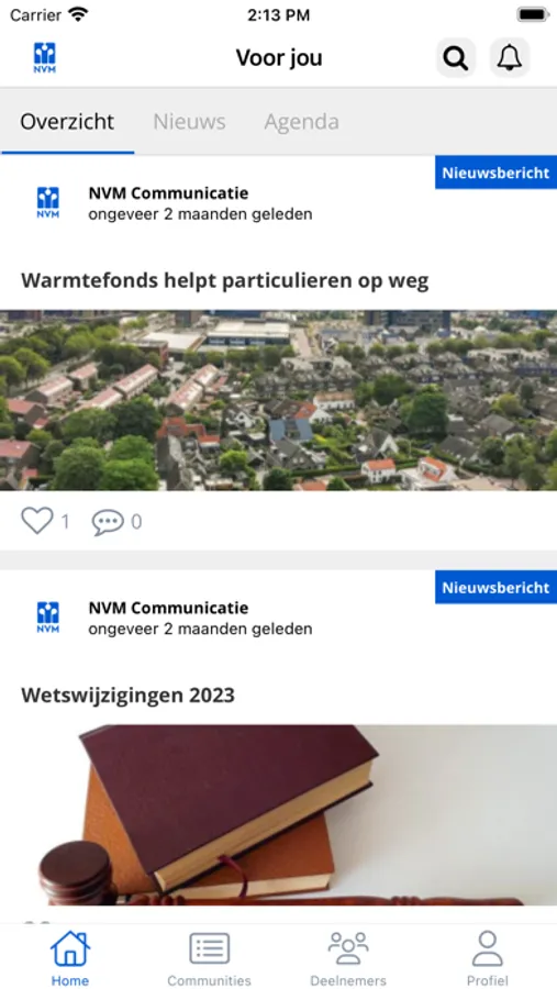 De NVM app voor NVM-makelaars en taxateurs. Lees het laatste nieuws, bekijk activiteiten in jouw regio en praat mee met NVM-makelaars/taxateurs uit jouw regio of van jouw vakgebied.
