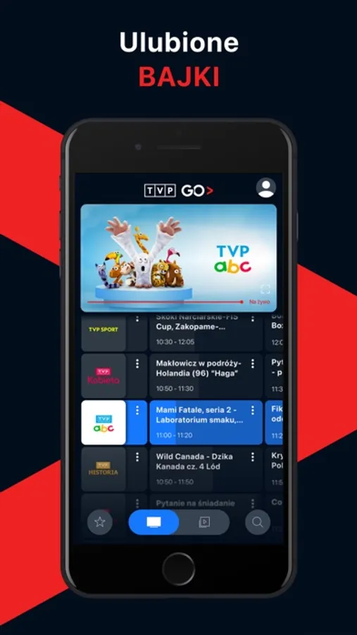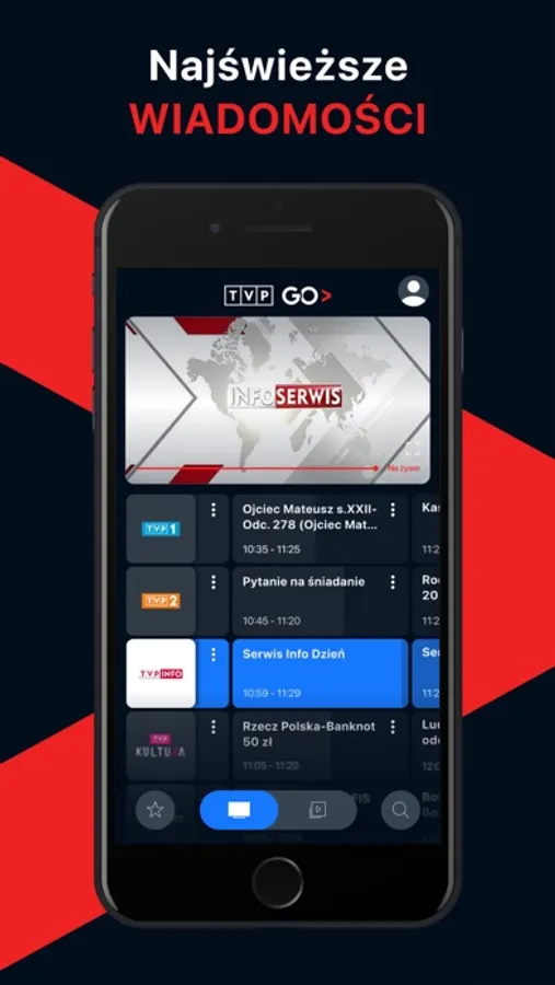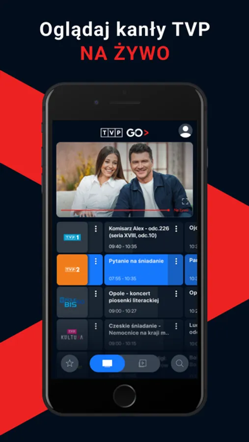 • Kanały na żywo - dostęp do kanałów Telewizji Polskiej w dowolnym miejscu i czasie