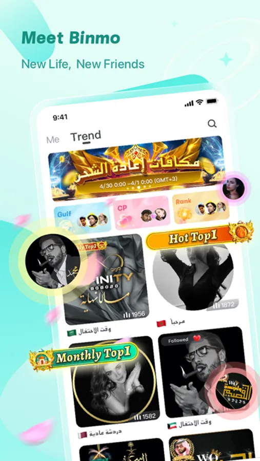 Binmo is now available in 70+ countries in localized languages. Make friends directly in group chat rooms.