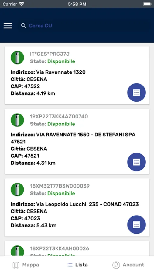 - mostrare un elenco di colonnine in ordine di distanza rispetto alla propria posizione
