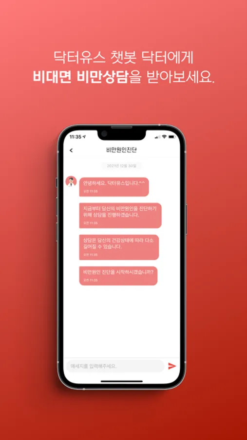 - 사용자는 병원을 방문하지 않고도 비만상담을 챗봇으로 진행할 수 있습니다. 닥터유스는 비만클리닉 의료진 및 영양사의 검증된 상담기법, 환자 유형에 따른 PHR 분석방법 등을 적용한 국내 최초의 비만원 인진단 챗봇입니다.