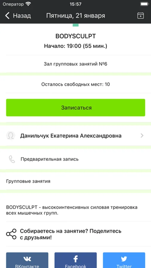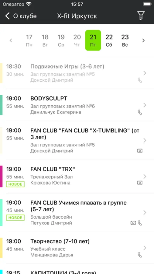 - получать оповещения о предстоящих тренировках и обо всех изменениях;