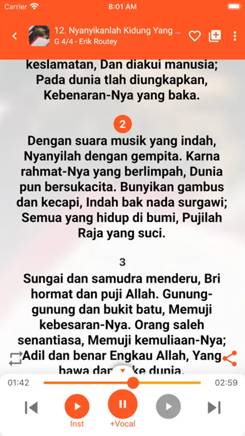 1. *Audio. Pemutar audio ada di bagian bawah lirik. Terdiri dari instrumen, +Vocal, dll
