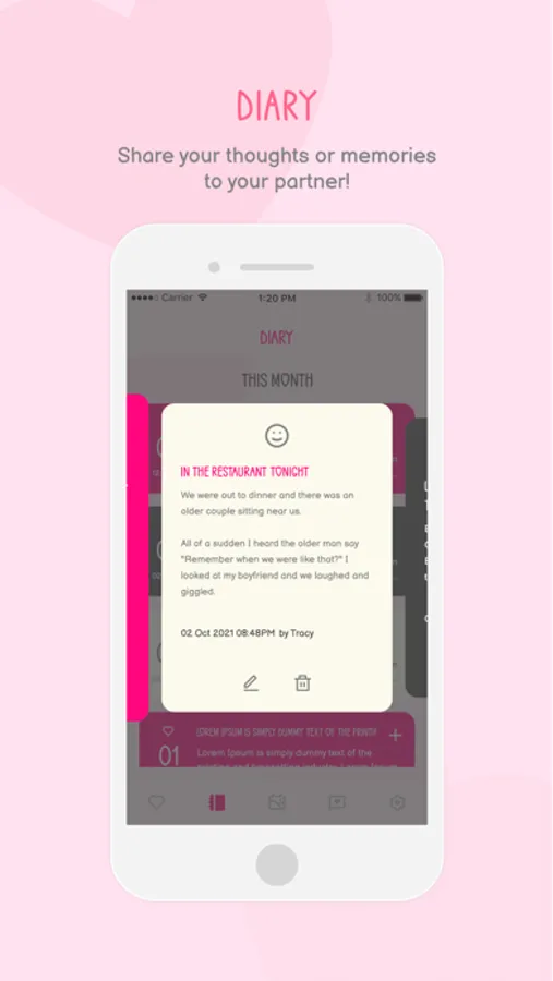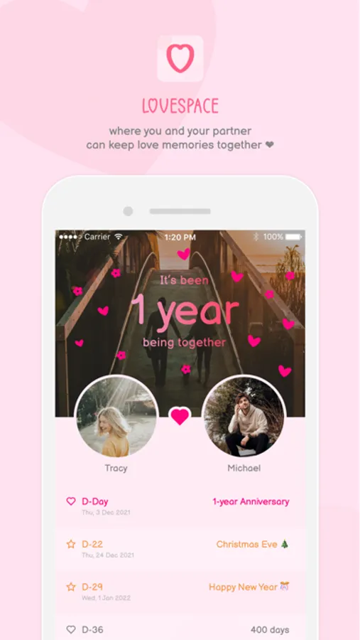 Love Space: a place to share a unique space for just the two of you, save and track your memories, express your feelings and keep the flame alive in your relationship.