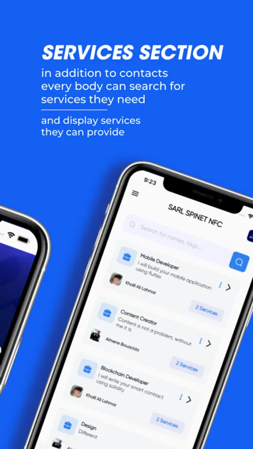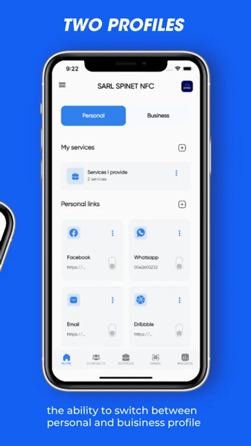 Based on NFC technology and QR code as an alternative, with one tap on one of our products will get you all of our contact information and it is the same for other users but the real magic lays in our features